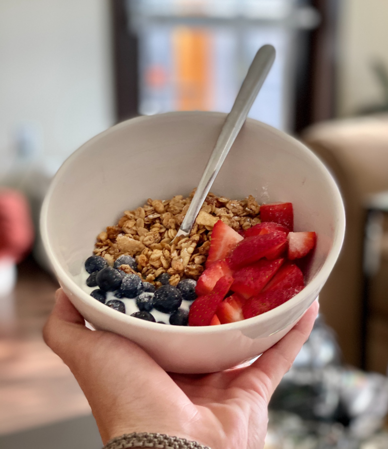 ‘In eerste instantie, direct na de diagnose, dacht ik: “nu houdt alles op wat leuk was aan eten”. Onze kinderen waren nog klein en het maakte me verdrietig dat ik nooit meer een pannenkoek met ze kon eten in het pannenkoekenhuis. Toch ging ik niet bij de pakken neerzitten. Inmiddels zijn we tien jaar verder en heb ik er prima mijn weg in gevonden, al moet ik altijd opletten wat ik in mijn mond stop. Op mijn vraag hoe haar eetpatroon eruitziet antwoordt ze: ‘Ik eet graag havermout en ik heb een lekker brood van de glutenvrije supermarkt in Apeldoorn. Ik heb ook een broodbakmachine maar zelf bakken doe ik toch niet zo vaak. Ik bewaar mijn brood en beleg gescheiden van dat van mijn gezin om het risico te minimaliseren dat ik onwillekeurig toch gluten binnenkrijg. Het avondeten eten we als gezin voor een groot deel glutenvrij. Bijna alle maaltijden zijn makkelijk om te vormen naar glutenvrij. Hartige taart maak ik niet meer maar een ovenschotel met aardappelschijfjes vind ik een prima alternatief. Als we pasta eten gebruik ik glutenvrije pasta, al doe ik daar dan altijd extra groente bij. Voldoende vezels is namelijk wel iets waar ik op let omdat ik de vezels uit brood mis. Daarom voeg ik ook altijd lijnzaad en chiazaad toe aan mijn havermoutpap.’